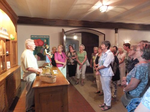 Im Juli 2018 fand unser Halbtagesausflug statt. Mit dem Zug sind wir nach Staufen gefahren, um die Brennerei Schladerer zu besichtigen. Bei einer Führung durch die Maischehalle, durch den Lager- und Filtrationskeller und durch die Brennerei mit den einmaligen Kupferbrennblasen lernten wir das Familienunternehmen und die Marke Schladerer kennen und erfuhren, was einen besonderen Obstbrand ausmacht. Wir verfolgten die Entwicklung vom einfachen Bauernschnaps zur international anerkannten Markenspirituose, die durch konsequentes Marketing (Schladerer Flasche) in aller Welt bekannt geworden ist.